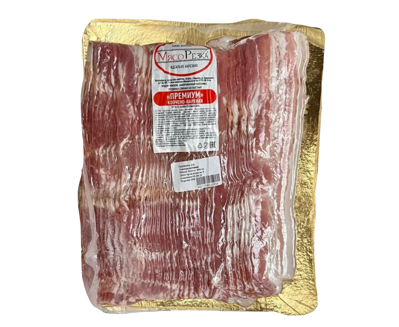 Описание товара "Бекон в/к 500г нарезка 1шт*26 Мясорезка"
