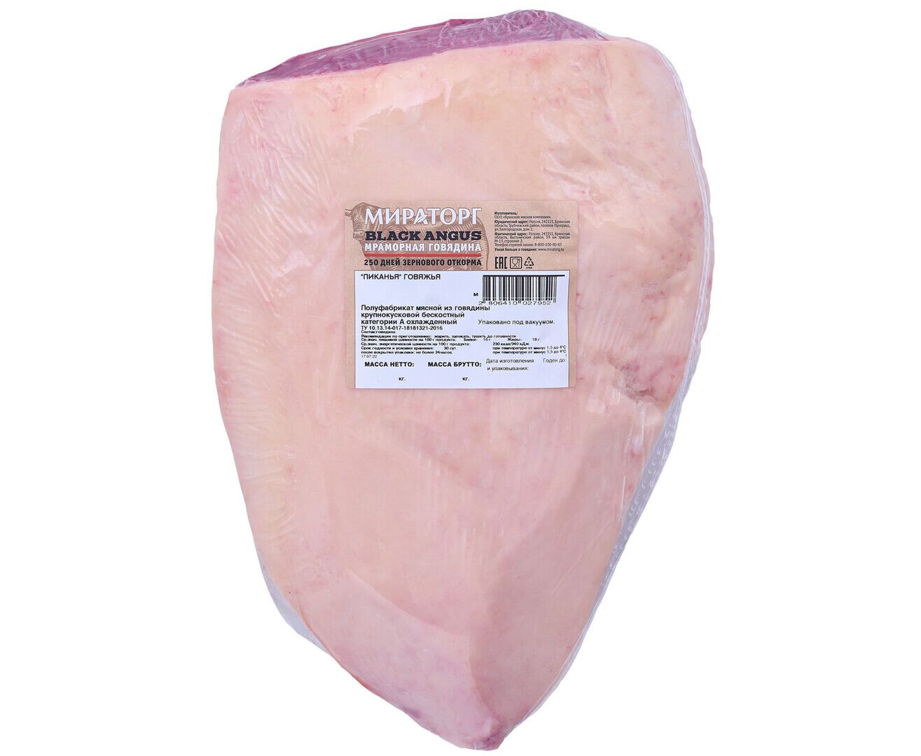 Описание товара "Говядина мраморная Пиканья с/м в/у Black Angus Мираторг (≈2,7кг*2) 1кг"