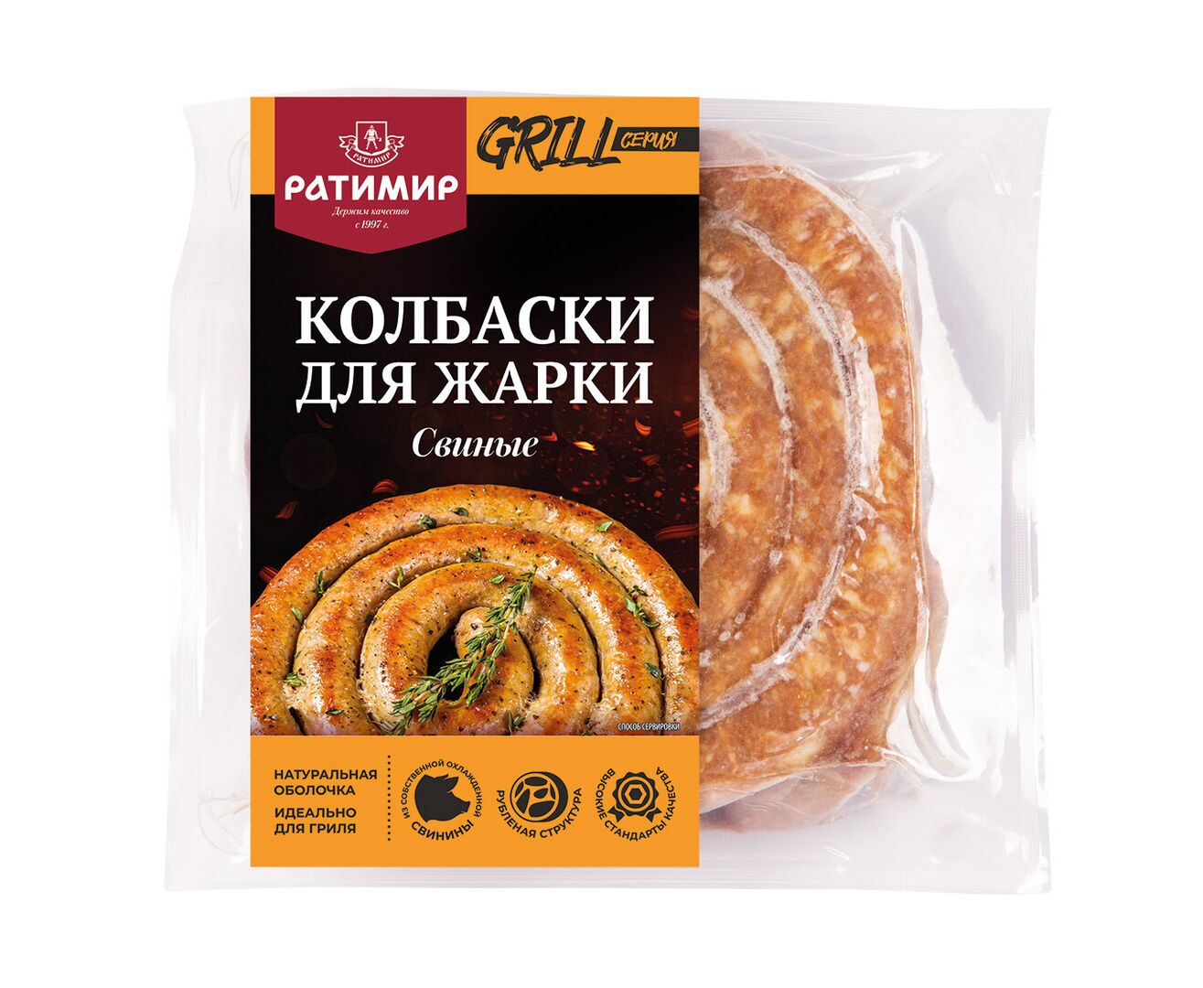 Описание товара "Колбаски для жарки из свинины улитка 1кг Ратимир"