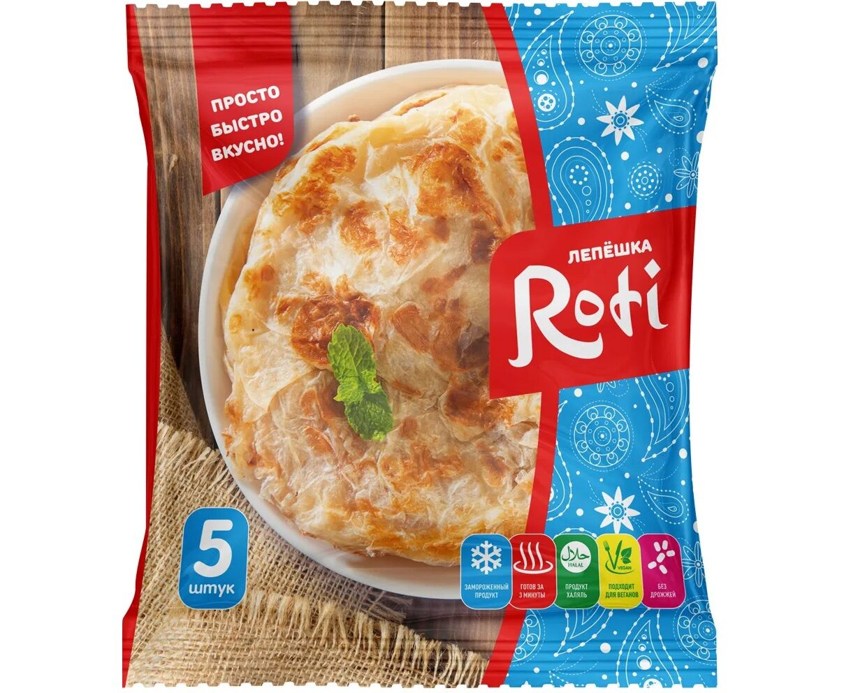 Приготовить лепёшку дома очень легко – её не надо даже размораживать. «Roti» следует просто обжарить на любой жарочной поверхности с обеих сторон, без добавления масла.