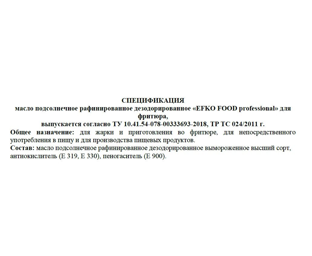 Масло фритюрное EFKO, в сравнении с "Санни голд" и "Идеал", единственное масло высшего сорта в состав которого входит пеногаситель и два антиокислителя.