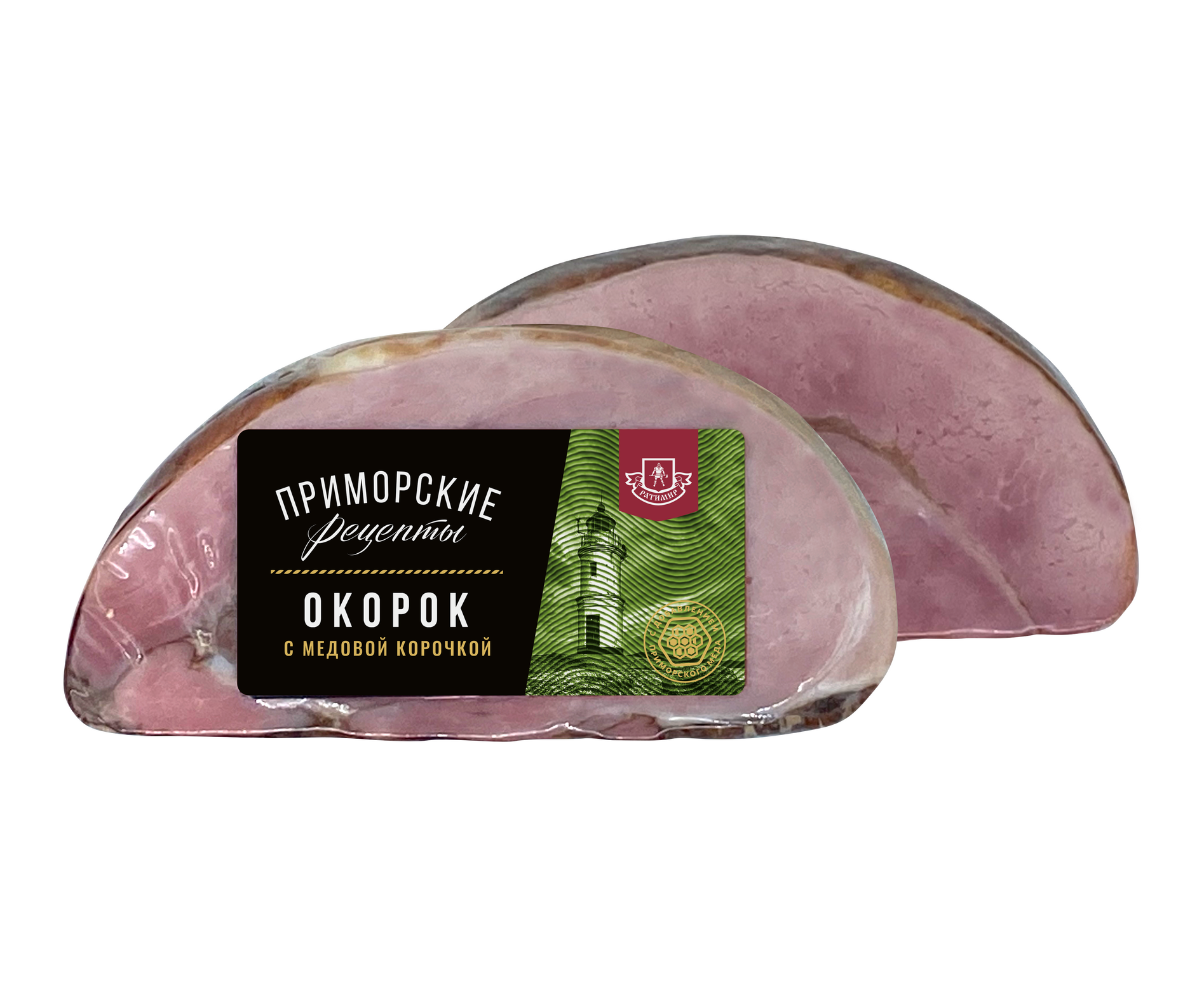 Описание товара "Окорок "Приморские рецепты" к/в (вак.упак.) ст.вес 350г 1шт"
