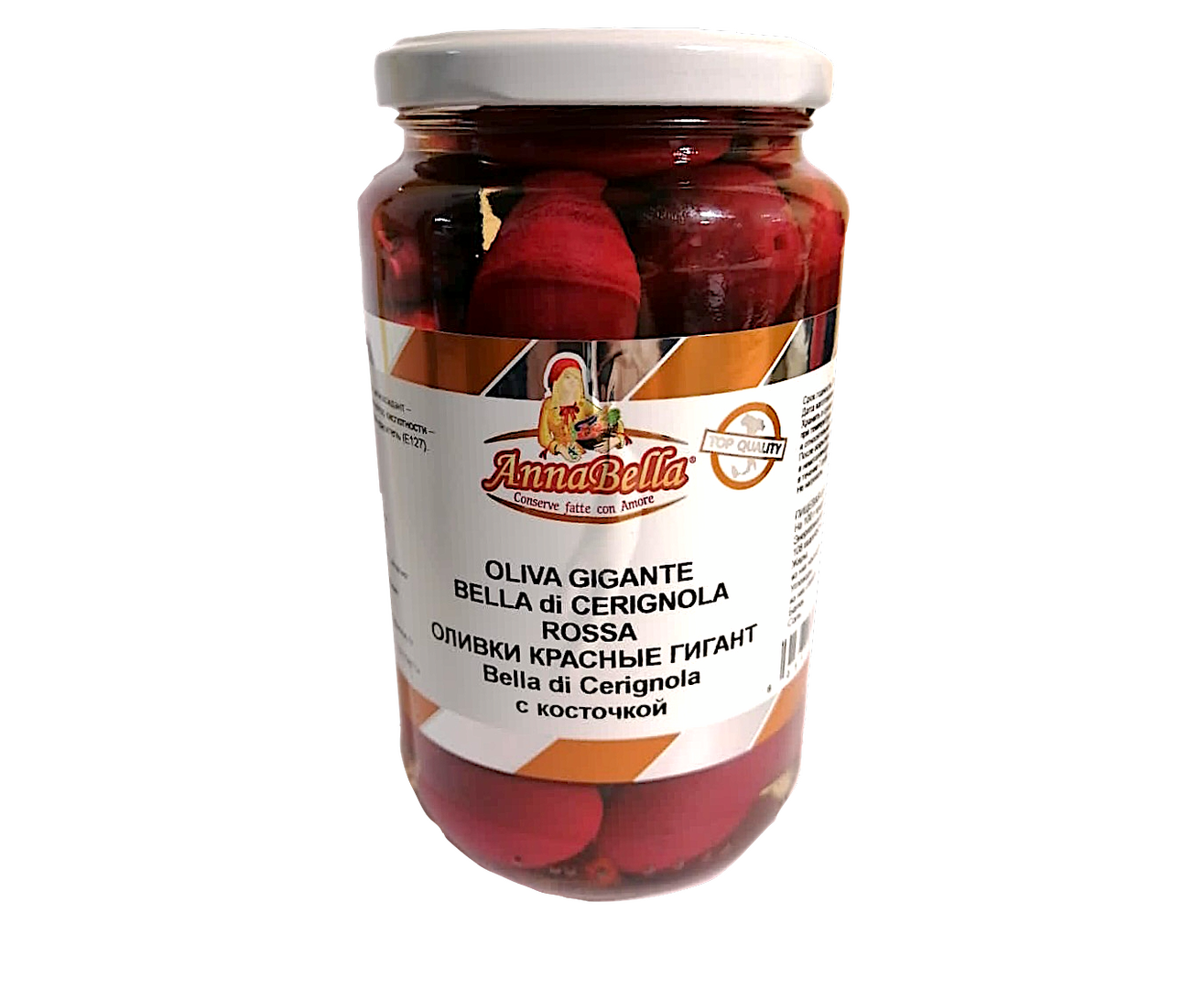 Оливки Гигант КРАСНЫЕ с/к Белла Чериньола 580мл (Сухой вес 330г) 1шт*6 AnnaBella Италия