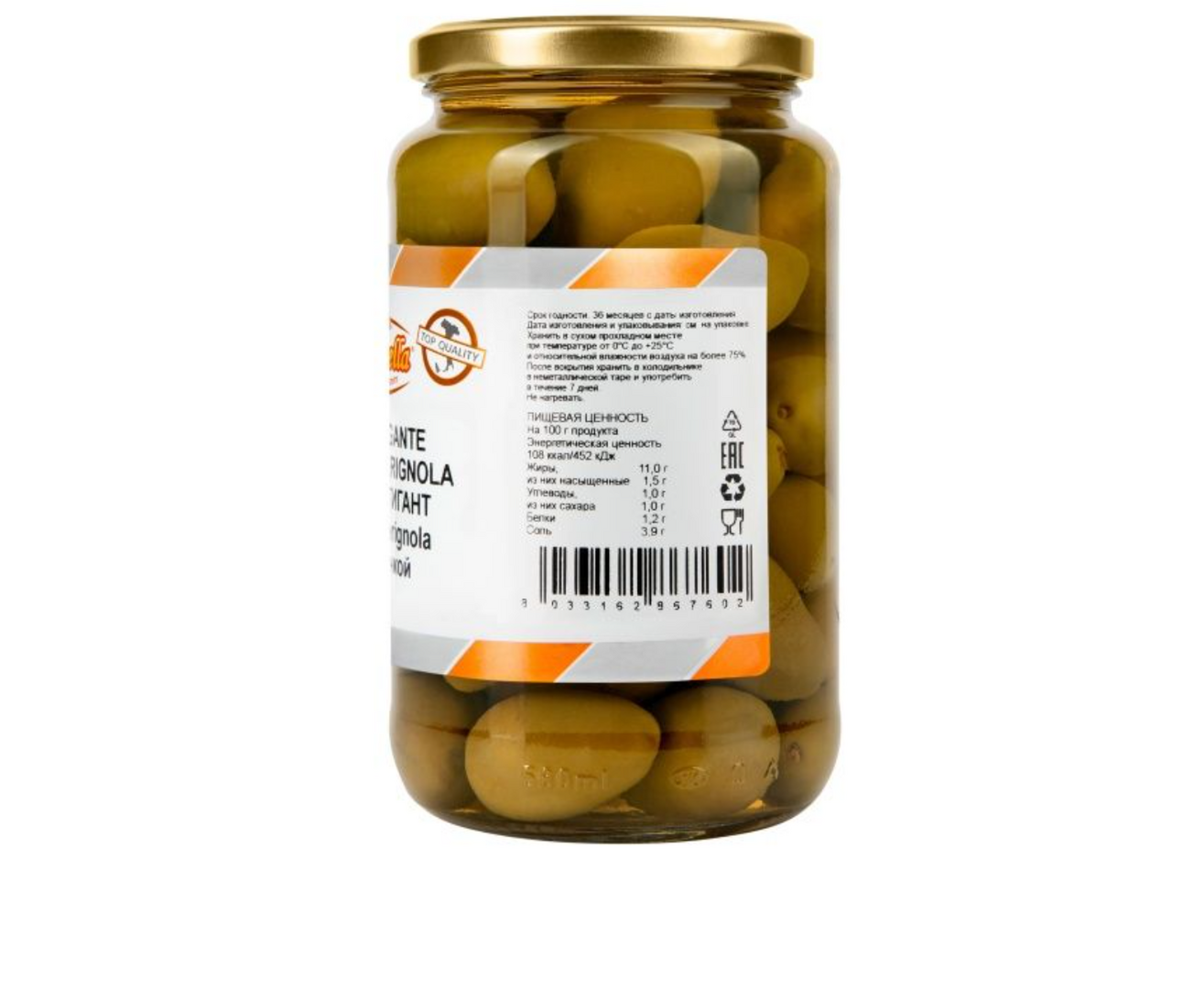 Описание товара "Оливки Гигант ЗЕЛЕНЫЕ с/к Белла Чериньола 580мл (Сухой вес 330г) 1шт*6 AnnaBella Италия"
