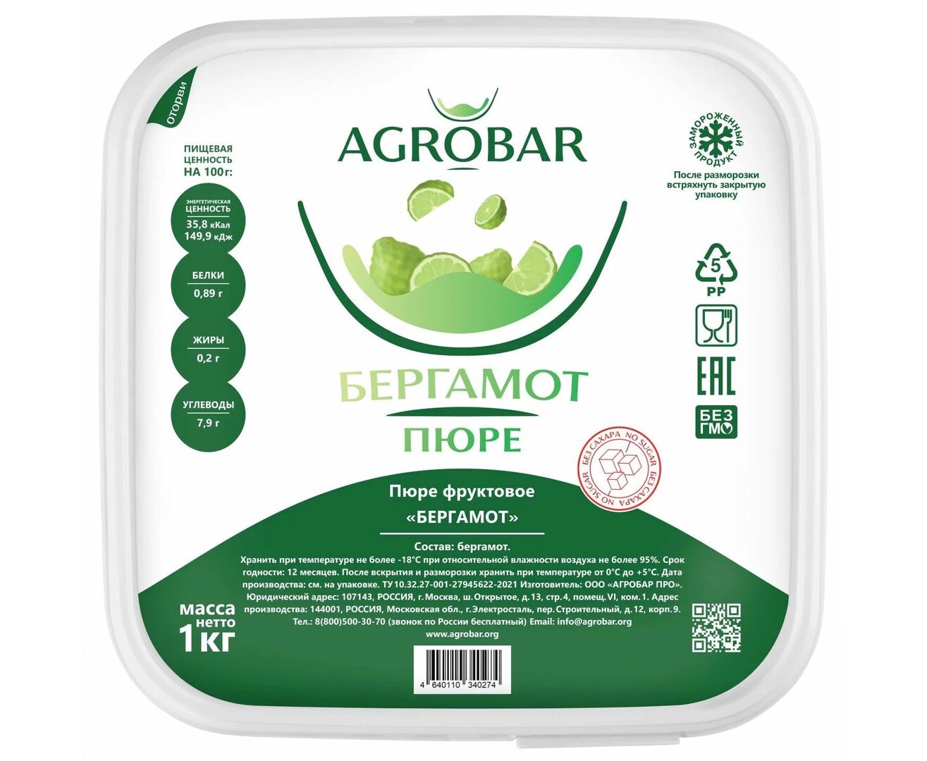 Описание товара "Пюре бергамот без сахара 1кг*6, AGROBAR, Россия"