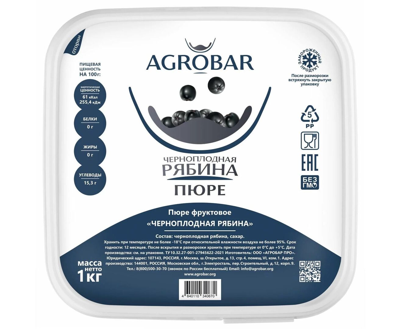 Описание товара "Пюре черноплодная рябина 1кг*6, AGROBAR, Россия"