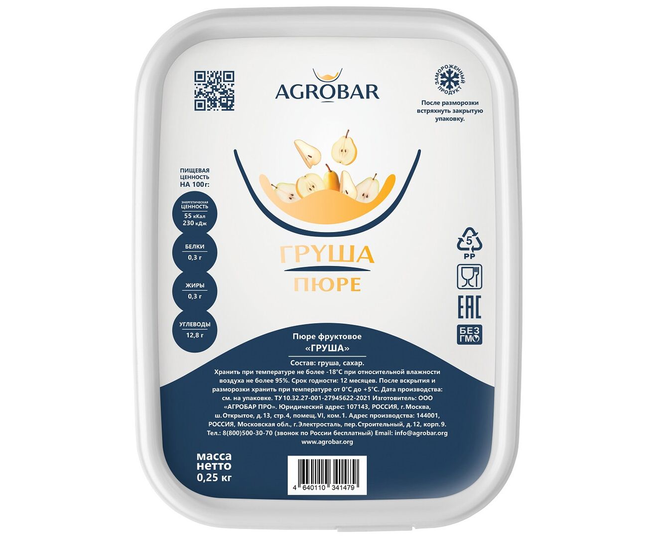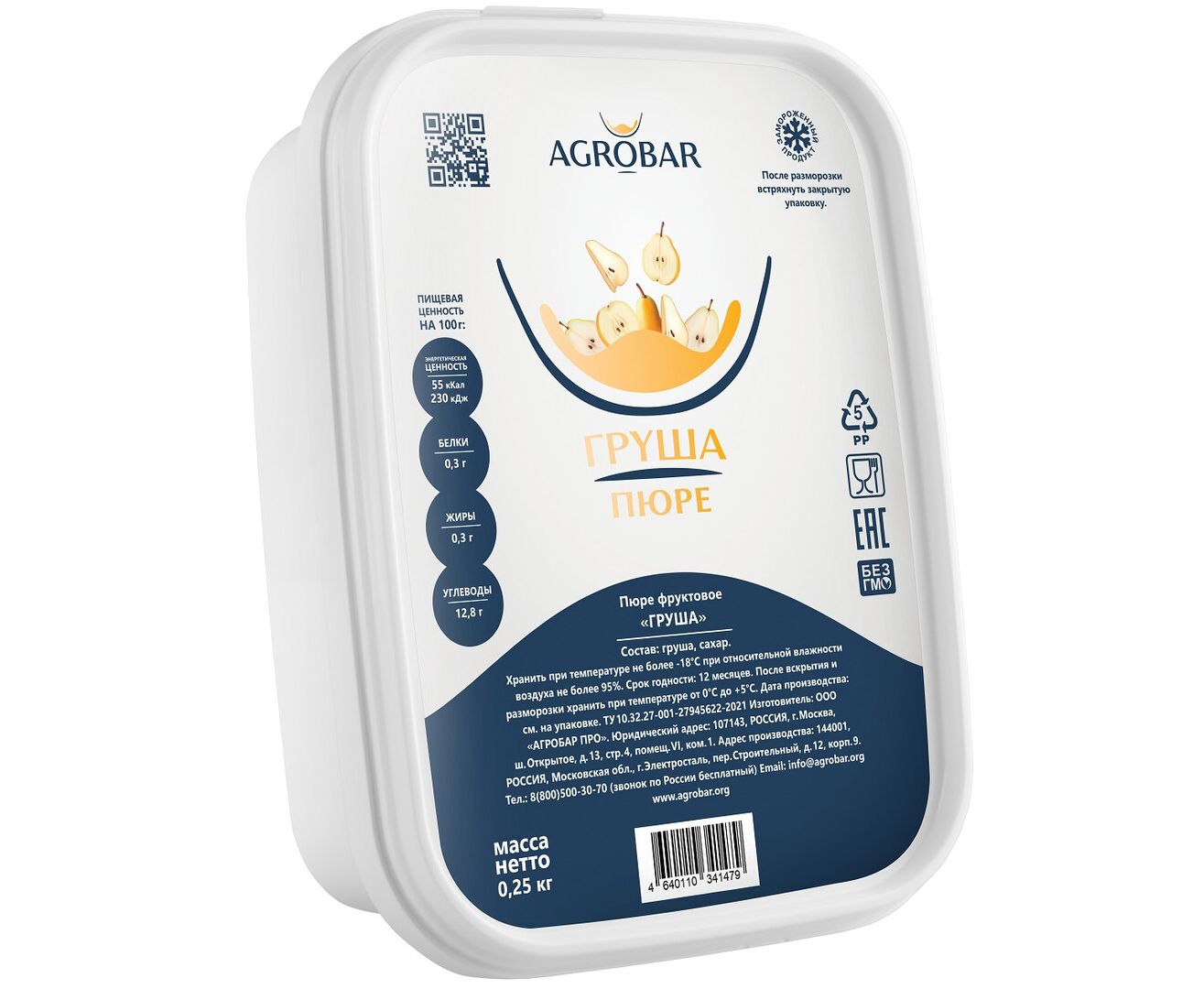 Пюре груша 250г*12, AGROBAR, Россия
