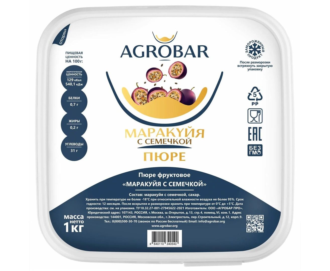 Пюре AGROBAR из маракуйи с семечками - это, по сути, замороженная мякоть маракуйи без какой-либо дополнительной обработки.