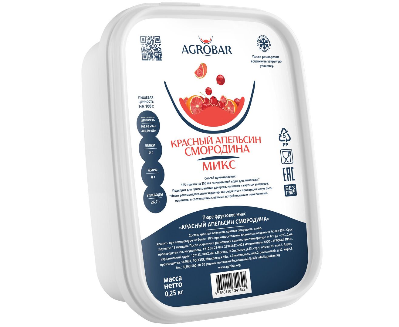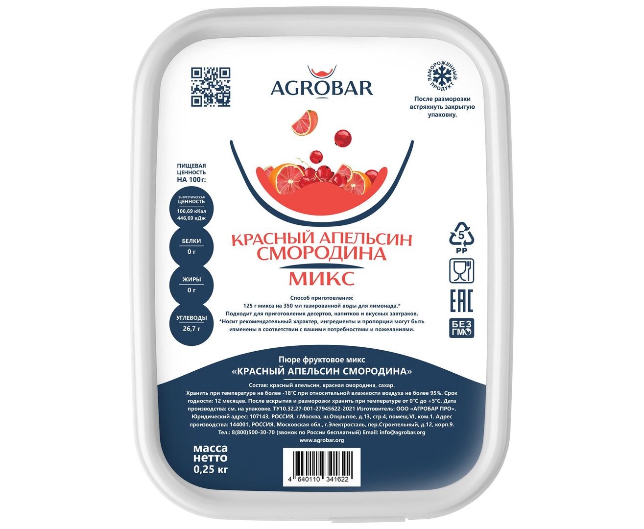 Пюре красный апельсин - смородина (Ред Сан) 250г*12, AGROBAR, Россия