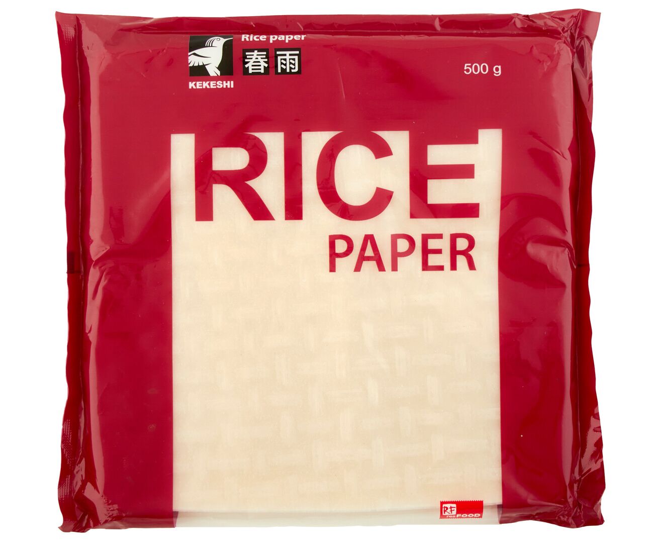С использованием рисовой бумаги готовят азиатские спринг роллы, нэмы и другие аутентичные блюда. Благодаря нейтральному вкусу она подходит и для приготовления закуски во фритюре, и в качестве кондитерского декора. Так, из рисовой бумаги кулинары делают декоративные паруса, которыми украшают торты. Кроме того, рисовую бумагу используют для декорирования в технике декупаж. Квадратная рисовая бумага Kekeshi является диетическим продуктом, в её составе только рисовая мука, вода и соль. Перед использованием её нужно замачивать в воде, чтобы размягчить листы. Она очень удобна в приготовлении.