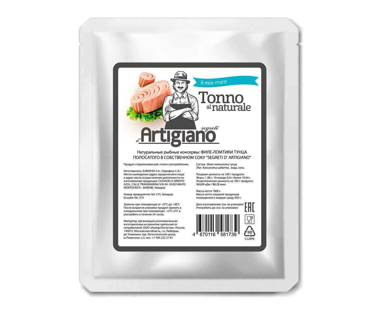 Описание товара "Рыба Тунец филе в с/с пауч 1кг"