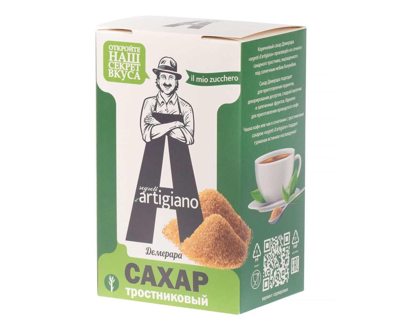 Описание товара "Сахар тростниковый коричневый Демерара 500г*10 Artigiano"