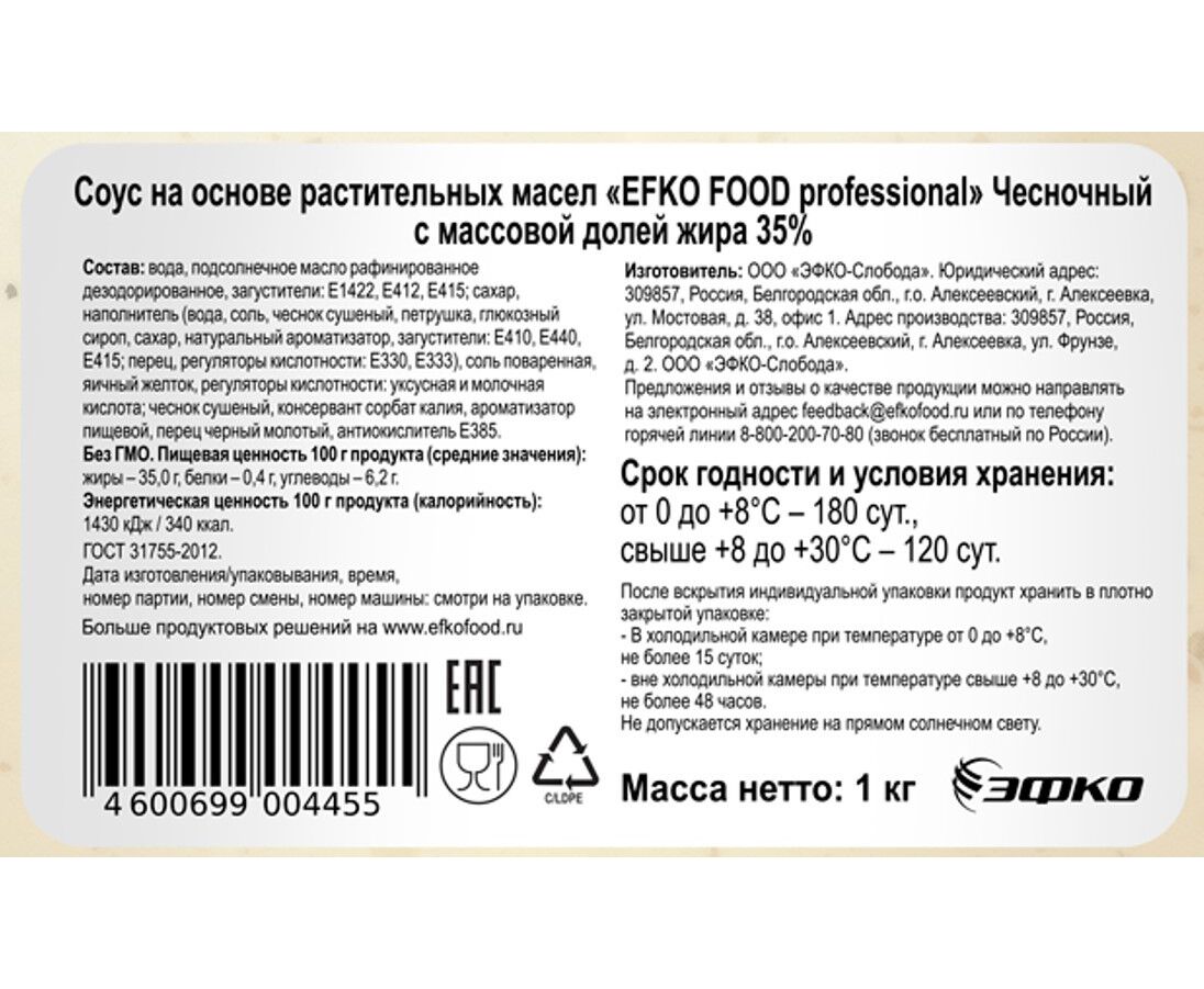 Описание товара "Соус Чесночный professional EFKO FOOD 35% 1кг*10"