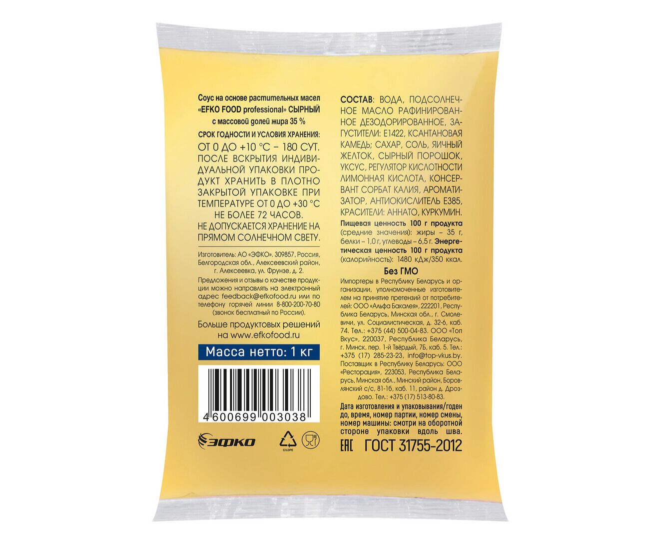 Соус Сырный professional EFKO FOOD 35% 1кг*10