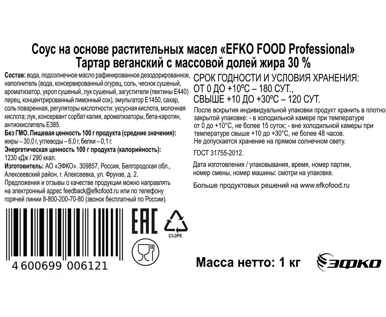 Описание товара "Соус Тартар Hi professional EFKO FOOD 30% 1кг*10"