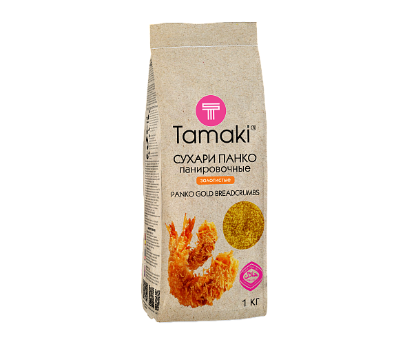 Сухари панировочные Gold TAMAKI – это традиционная панировка Панко с ярко выраженным золотисто-желтым цветом и пшеничным вкусом.