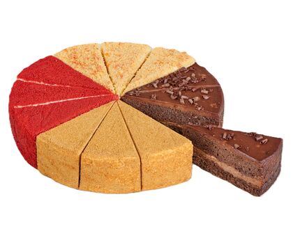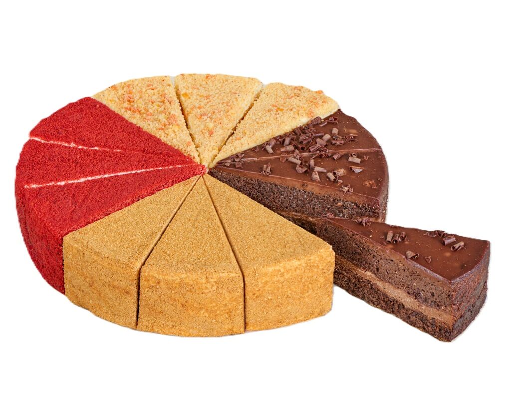 Один торт хорошо, а 4 лучше! В Ассорти тортов собрали 4 популярных позиции, чтобы в одной упаковке каждый нашел любимый вкус: Торт "Прага", Торт "Медовик", Торт "Морковный", Торт "Красный Бархат
